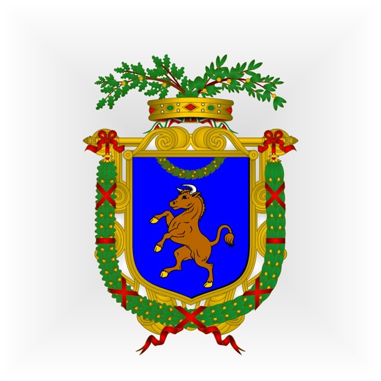 Blasonnement : D’azur, au taureau saillant au naturel, accompagné en chef d’une couronne de chêne au naturel, mouvante du chef.