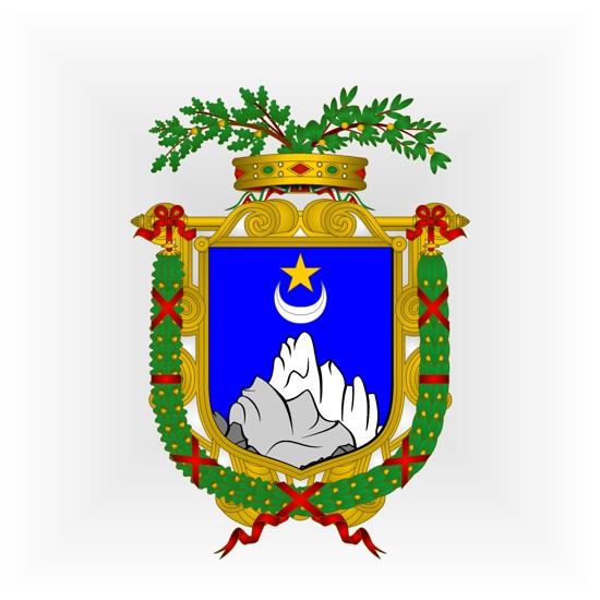 Blasonnement : D’azur, au mont enneigé au naturel, accompagné en chef d’un croissant d’argent, surmonté d’une étoile d’or.