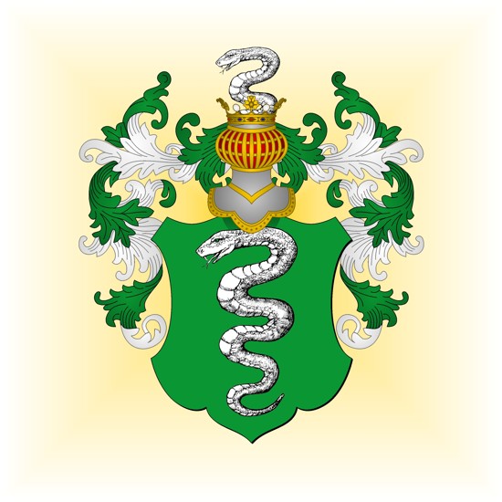 Dernière maison de Poudlard, Serpentard (Slytherin) dont les armoiries ont pour blasonnement : de sinople, au serpent d'argent.