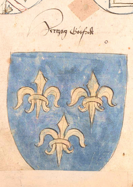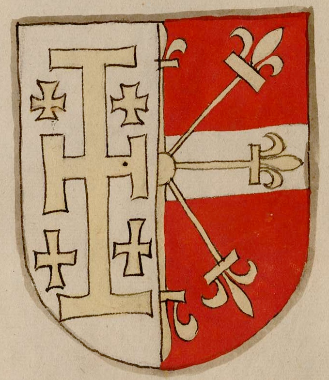 à senestre : de France, période capétienne (d'azur semé de fleur de lis d'or)