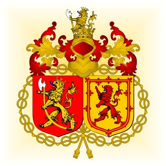 Magnus VII de Suède (Magnus Eriksson) est le petit-fils d'Haakon V (Håkon Magnusson) de Norvège et d'Euphémie (Euphemia Güntersdotter) de Rügen. En l'absence d'héritier mâle direct, il hérite par sa mère, la Princesse Ingeburge (Ingeborg Håkonson), Duchesse consort de Sudermanie, de la Couronne de Norvège, alors que par son père Eric (Erik Magnusson) de Suède, Duc de Sudermanie, quelques semaine auparavant, il avait hérité de la Couronne de Suède. Ainsi, en union personnelle, il devient le souverain de deux royaumes. La situation cependant ne durera pas, en 1343, un soulèvement de la noblesse norvégienne contraint Magnus à abdiquer au profit de son plus jeune fils, Haakon VI, rompant ainsi l'union personnelle