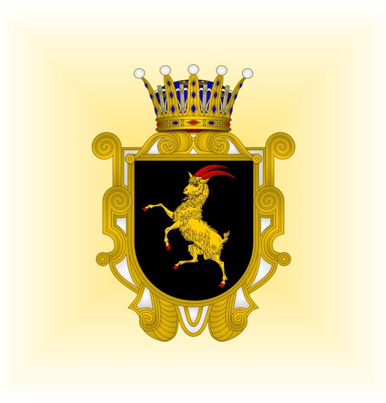 Le blasonnement des armoiries d'Helsingie (Hälsingland) est : de sable, au bouc saillant d'or, accorné et onglé de gueules.