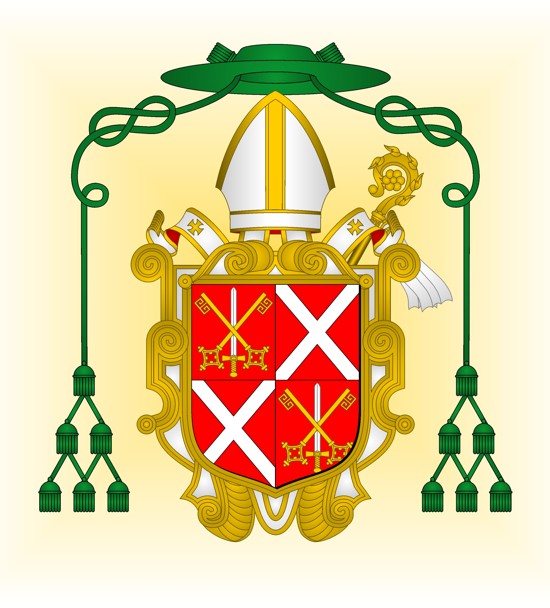 Blasonnement : Ecartelé : 1 et 4, de gueules, à deux clés d’or, passées en sautoir sur une épée haute d’argent, garnie d’or (Cluny) ; 2 et 3, de gueules, au sautoir d’argent (Chasaut).