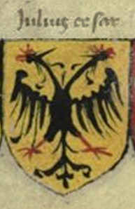 par une aigle bicéphale de sable sur champ d'or.