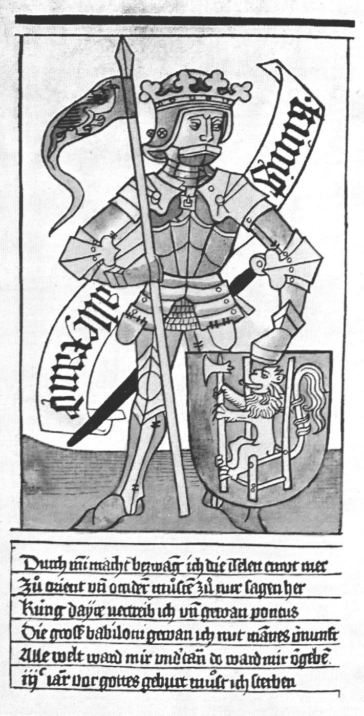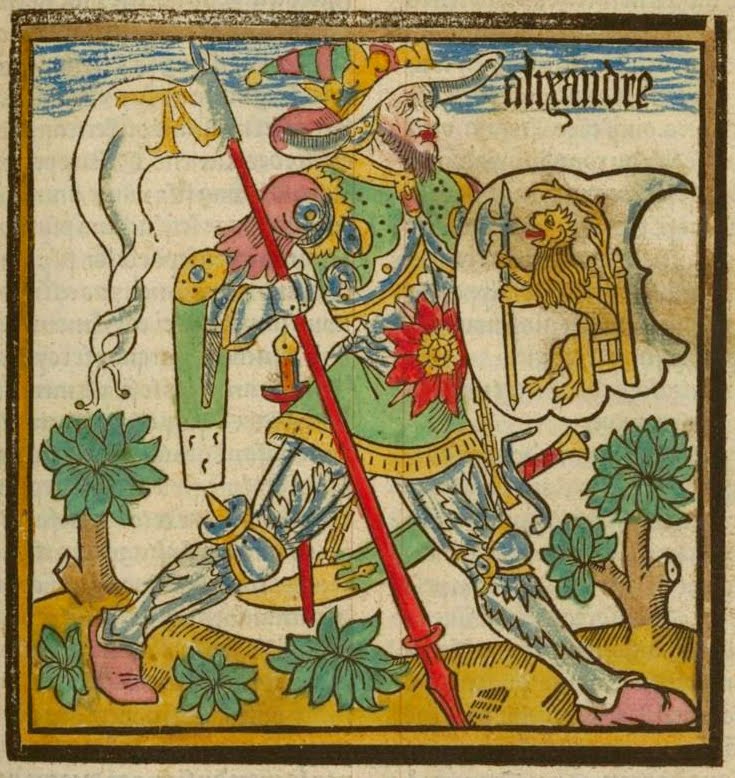Le thème des Neuf Preux apparaît sous la plume du Lorrain Jacques de Longuyon en 1312 dans les Voeux du Paon, un roman de chevalerie écrit en vers. L'auteur du roman regroupe parmi ses personnages des héros nés à des époques très différentes : trois personnages de l'Antiquité grecque et romaine (Hector, Alexandre le Grand et Jules César), trois personnages de la Bible (Josué, David et Judas Maccabée), et trois personnages incarnant le merveilleux chrétien du Moyen âge (Arthur, roi de Bretagne, Charlemagne, et Godefroy de Bouillon, héros de la 1ère Croisade). Les Neuf Preux incarnent l'idéal chevaleresque entre le XIVe et le XVIIe siècles. La tradition leur attribue des armoiries. Les hérauts d'armes, enlumineurs et un grand nombre d'artistes les ont représentés massivement dans tous les arts et à toutes les époques..