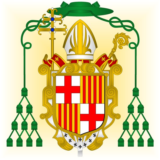 Ecartelé : 1 et 4, d'argent, à la croix de gueules (Narbonne); 2 et 3, d'or, à quatre pals de gueules (Barcelone).